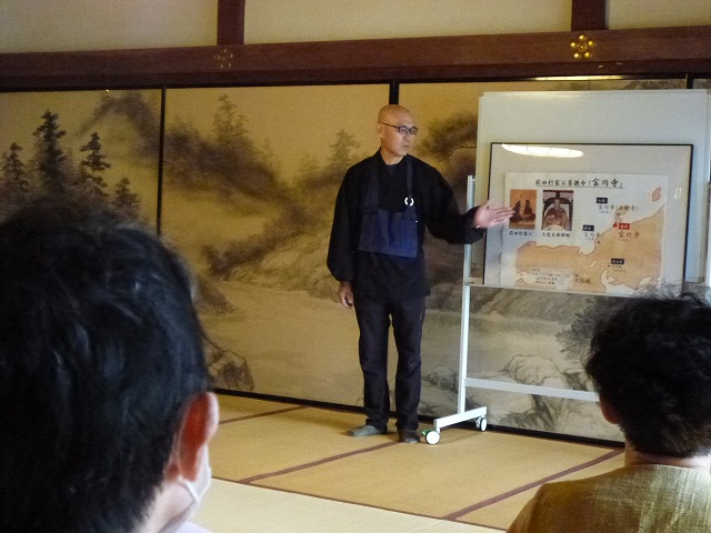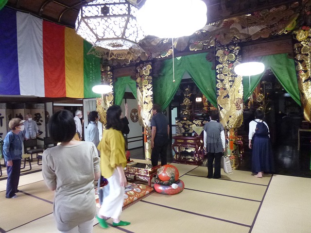 お隣、瑞雲寺では冥府で死者の罪過を裁く10人の王、「十王図」を見せて頂きました。人は死後、先ず初七日を皮切りに四十九日まで7回裁かれます。5回目の閻魔大王によって六道の行先が決められ、残り2回で輪廻先とその条件が決まるとか。残された3回分の裁きは百日忌、一周忌、三回忌に。法要時遺族の悲しむ様子や、十王に対して減罪を願う姿、供養に対する態度が証拠となるので、鍵を握るのは遺族という事に。皆身につまされる思いでツアーの最後を締め括ったようです(笑)