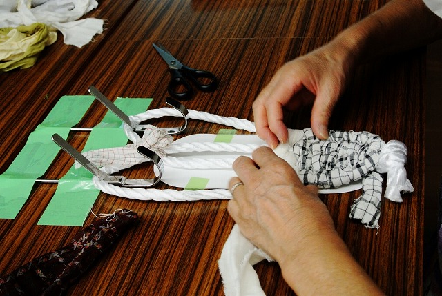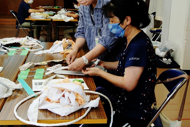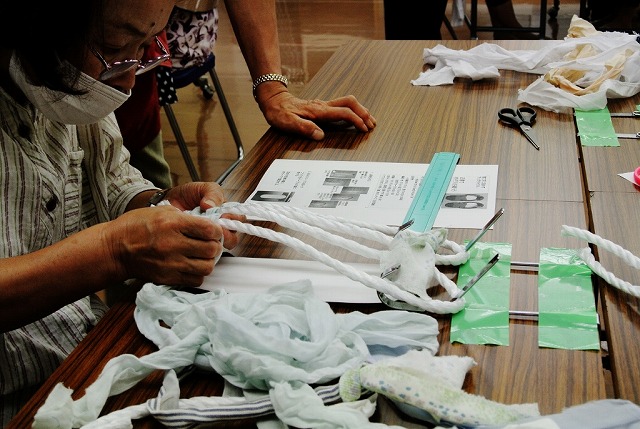 金沢エコライフクラブの方々にご協力をいただき、2時間で何とか仕上げました。布を裂く準備から丁寧な指導までしていただき本当にありがとうございました。皆さん四苦八苦して仕上げたのでSDGsを実践しての達成感もひとしおだったと思います。