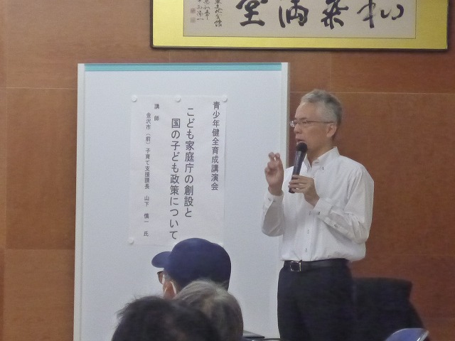 7月5日(水)公民館2階ホールにおいて、講師に金沢市(前)子育て支援課長 山下慎一氏をお招きし、「子ども家庭庁の創設と国の子ども政策について」の講演をしていただきました。