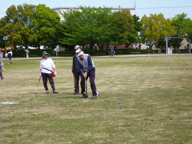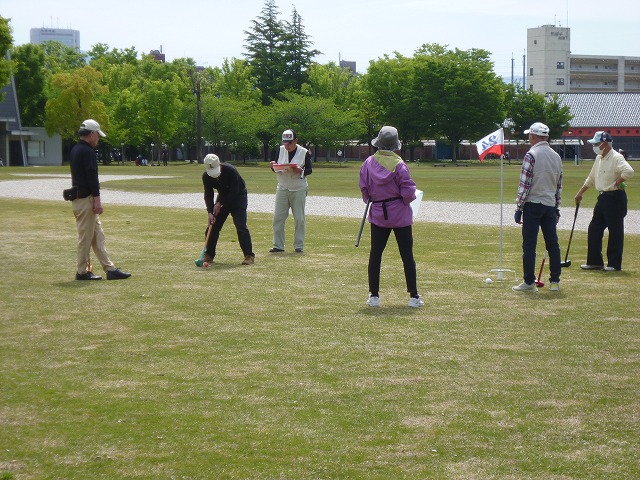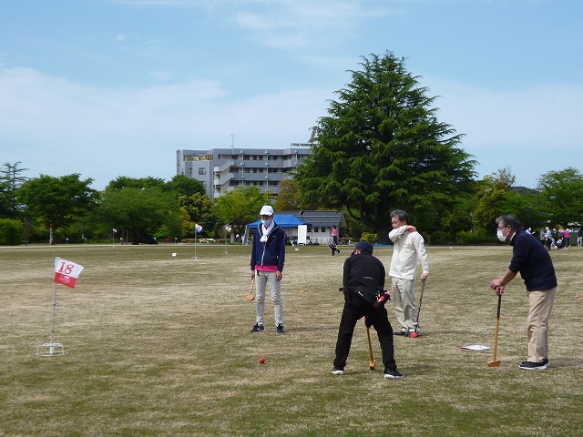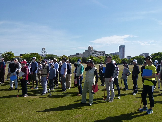4月29日(土・祝)大和町広場にて町会対抗グラウンドゴルフ大会が開催されました。早朝から気温も上がり、少し動くと汗ばむような好天の下、各町会からの参加者62名がプレーを楽しみました。