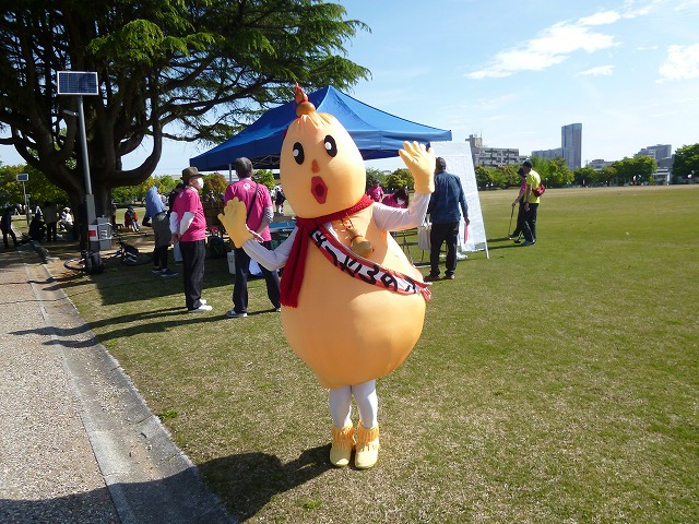 開会式直後の始球式で「ひょ~たんタン」がもうひと転がりでホールインワンという見事なショットを披露し、大会が始まりました。