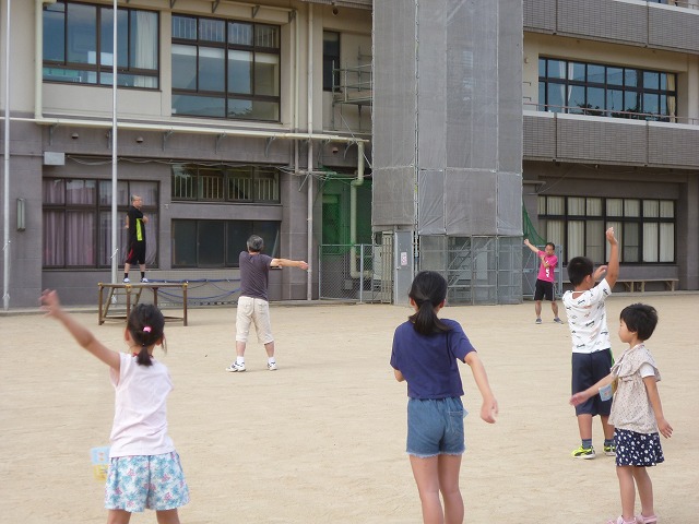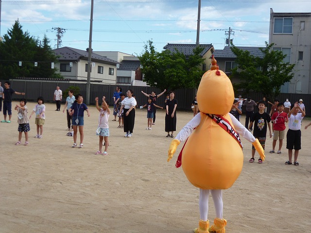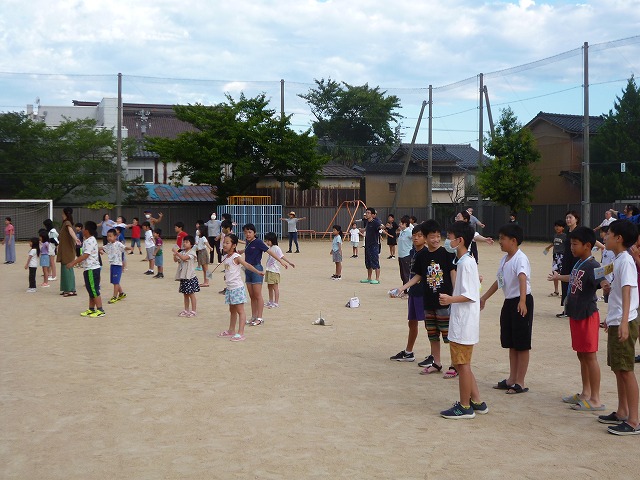 8月1日(火)明成小学校グラウンドにて瓢箪地区ラジオ体操が開催されました。朝から暑い日でしたが、少し曇り空で6時過ぎに細かい雨も降り、好天続きのグラウンドには恵みの雨となったようです。6時20分頃から続々と子ども達も集まりはじめ、例年より少し少ない約110名の参加でしたが、元気よくラジオ体操を行いました。終了後にジュースが配られ、今年はリンゴ味が人気でした。最後に関係者皆さまのおかげで今年の瓢箪地区ラジオ体操も終えることができました。ご協力ありがとうございました。