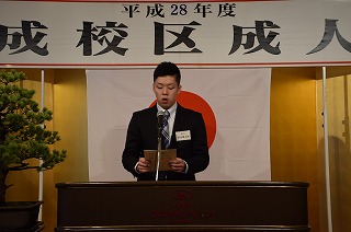 1月8日、ANAクラウンプラザホテル金沢で平成28年度明成校区成人式が、新成人40名の参加のもと、金沢市長代理総務局担 ・・・