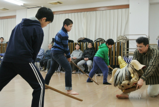 窓の外は雪がちらつく1月22日(日)に、新年恒例の瓢箪地区獅子舞保存会の初稽古が瓢箪町公民館にて行われました。昨年9月 ・・・